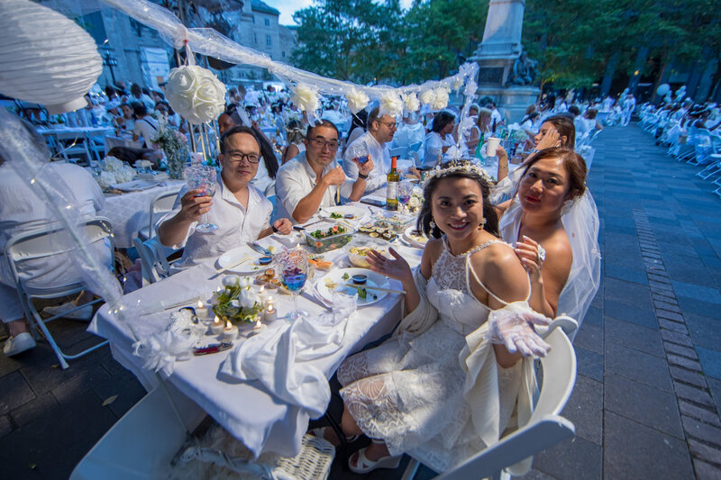 The Dîner en Blanc in Montreal is an exceptional evening where elegance and creativity take center stage. Guests and artists transform an iconic location, revealed at the last minute, into a living tableau of art, fashion, and gastronomy. Dressed elegantly in white, attendees arrive at the secret venue for a chic picnic. They bring their own tables, chairs, picnic baskets—all the essentials to sit and forge new connections in one of the city’s most beautiful public spaces.