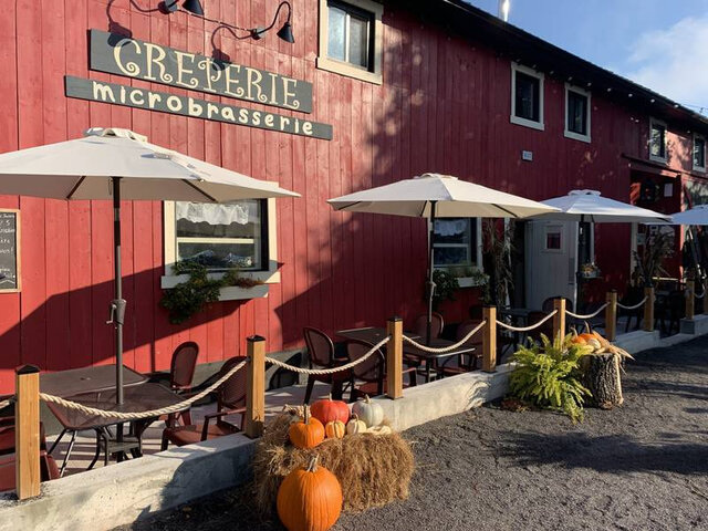 In the charming village of Saint-Antoine-de-Tilly, authentic Brittany-style crêpes (organic wheat or buckwheat) topped with local products (Gouda, duck, vegetables, apples, berries, maple syrup and sugar), espresso, Belgian hot chocolate, apple juice and apple must from the orchards, craft beers, local wines and ciders. Cozy decor.