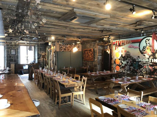Restaurant proposant une cuisine québécoise traditionnelle avec une tournure actuelle, comme un pâté chinois décomposé, la fameuse tourtière du lac, un bon vieux ragoût de pattes, des croquettes de pâté à viande et un tartare de cerf. Le tout dans un décor éclectique unique et une ambiance festive !