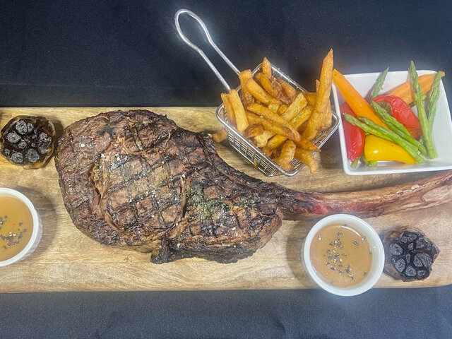 OUVERT 7 SOIRS : chansonniers les jeudis, vendredis et samedis soirs. Régalez-vous avec notre menu varié : grillades, poissons, fruits de mer, pâtes, plateaux à partager et le plat vedette, le tomahawk vieilli et grillé à la perfection !
