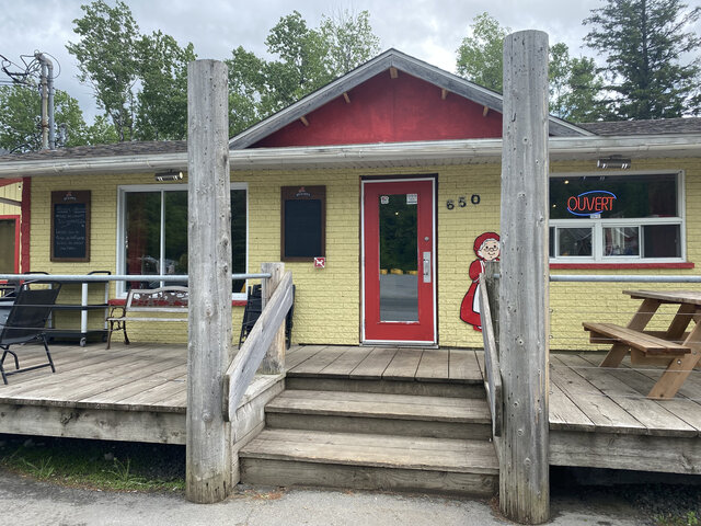 Restaurant de style casse-croûte, terrasse, salle à manger et service de livraison.