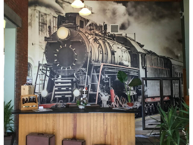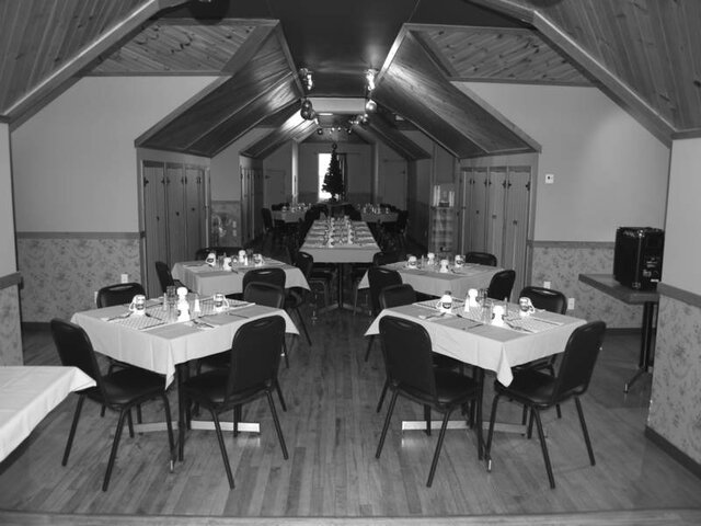 La gare de train du CN a été construite en 1910 et complètement rénovée avec les matériaux originaux en 1999. À l’étage principal on y retrouve des plafonds de 15 pieds avec de grosses poutres de bois et des lustres de vitrail faits à la main. Les tables, banquettes et étagères fabriquées avec le bois original trouvé dans le bâtiment et les murs de briques intérieurs donnent à la gare cette atmosphère invitante et chaleureuse. La salle de réception a été construite avec le plancher en bois franc et le plafond avec le bois original de la gare pour créer une ambiance magnifique. Pour les réservations téléphonez au 819 826-6655. Notre terrasse et la promenade sont construites avec les pavés originaux de 1910, entourées par une barrière en bois